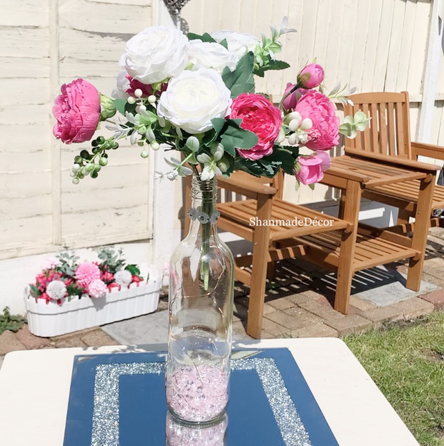 Bottles come with pink crystal rhinestones, lights and flower bunch.