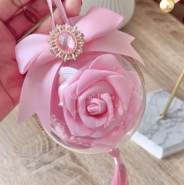 Pink Rhinestone Rose Christmas Bauble Ornament Keepsake